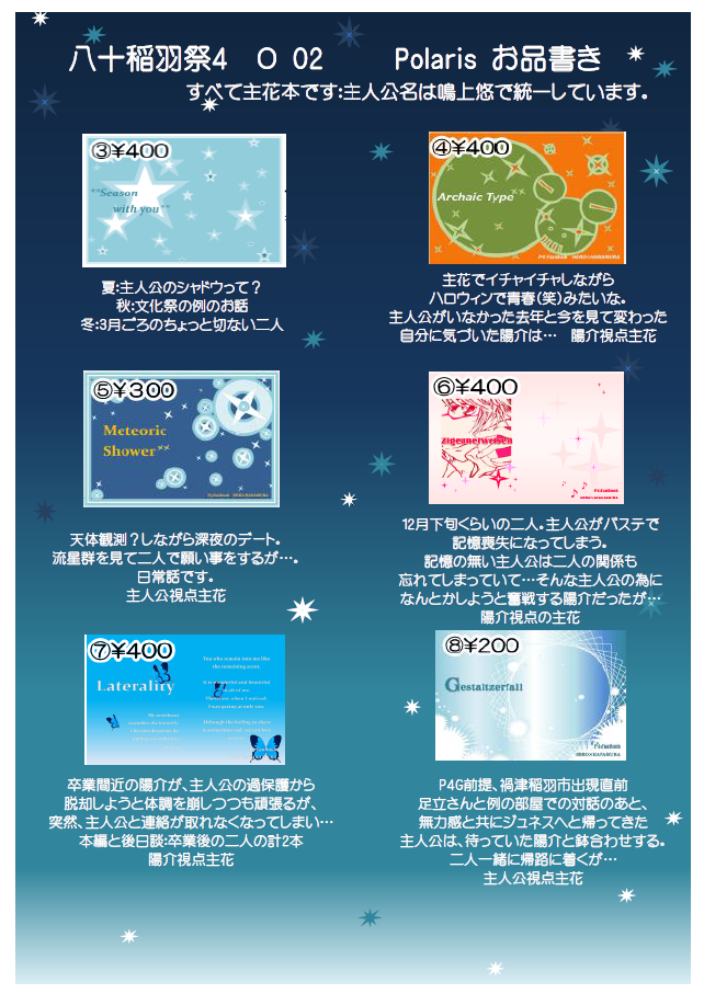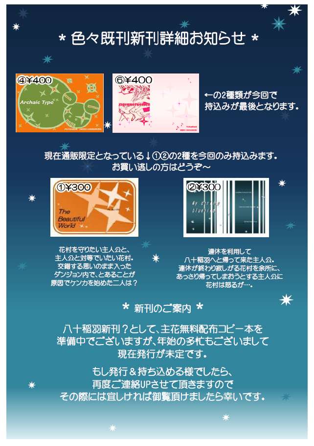 (緊急追記1・2・3)八十稲羽祭4お品書き