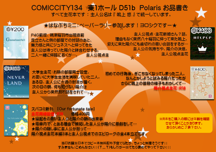コミックシティ134のお品書きをUPしにきましたー;